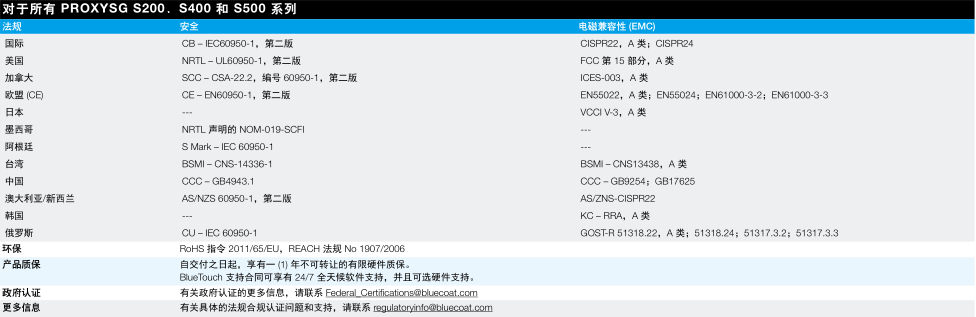 The license, authorization or other approval required for the import. v.DS-PROXYSG-S200-S400-S500-A4-EN-v2e-0614